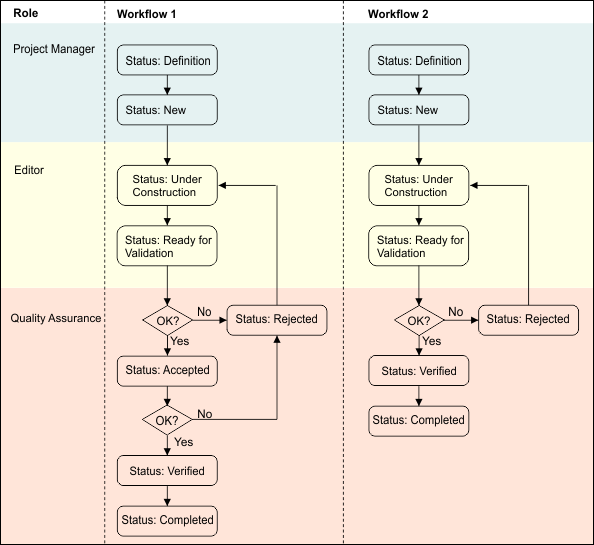 • Quality Assurance: Quality Assurance reviews the project and changes the status to Rejected then to either Accepted or Verified, depending on workflow.