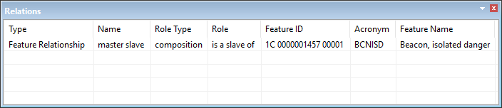 The Relations window displays collection object or master-slave information for a the superselected feature.