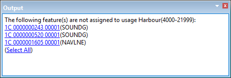 The features in the active usage that are not represented on the selected usage are listed in the Output Window.
