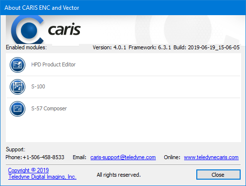 Menu | Help > About CARIS |