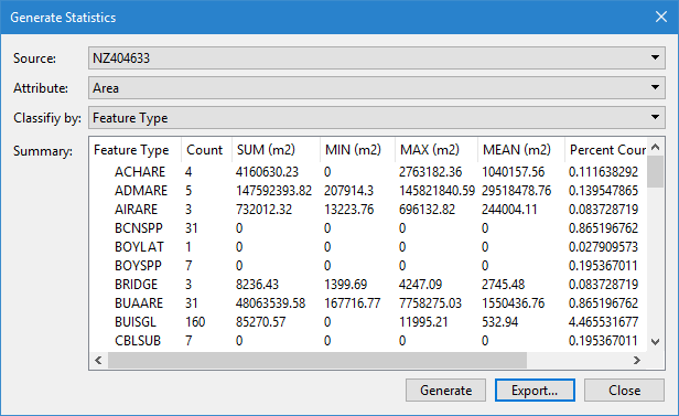 CARIS BASE Editor : Feature Editing : Commands : Generate Statistics