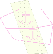 When the dredged area is used as a cutting feature, all features within it are deleted and four anchorage areas are created.
