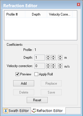 Tools > Editors > Swath > Refraction Editor