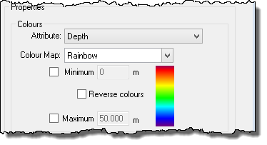 Colours | In the Subset Editor View, attributes of data such as depth or uncertainty can be identified visually by assigning colours to different attribute values.