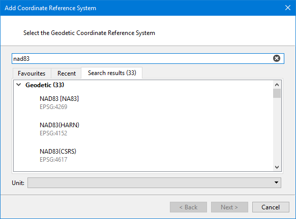 Pick a geodetic coordinate reference system for use with the projected coordinate reference system.
