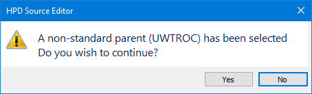 If the superselected feature is not a recognized parent object in the catalogue, a warning message is displayed.