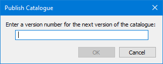 Version number | Version number for the catalogue that is created from the published one. This version is the catalogue that can be opened and modified. Type a value. |
