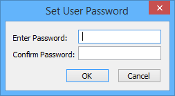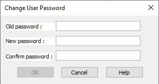 Change user password | See Changing Passwords – Functionality for more information. 1. Select a user in the Users table. 2. Click Change User Password. The Change User Password dialog box is displayed.