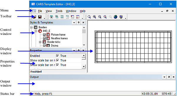 Styles & Templates window | Controls the styles and templates of the following features: • borders • scale bars • subsidiary graduations • projected grids |