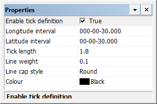 Tick length | The length of a tick in millimetres at map scale: A positive value means the tick is outside the neatline. A negative value means the tick is inside the neatline. |
