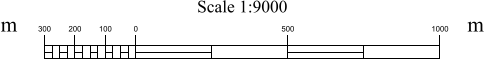 One distance label is placed over each long tick. These labels show the distance (metres or kilometres) covered by the scale bar on the ground.