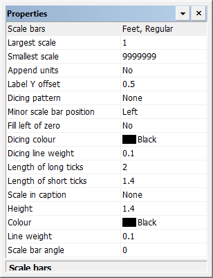 Height | The distance between the top and bottom lines of the scale bar in millimetres at map scale. This should be the same as the length of the short ticks. Type a value. |