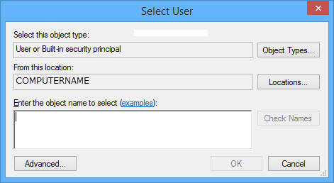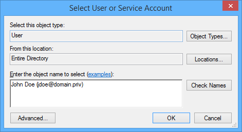 9. Navigate to the location that contains the desired user account, select it and click OK.