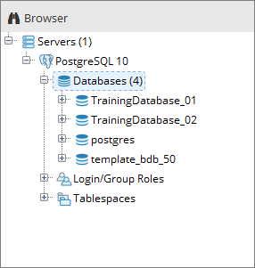 Once you create a database within the BDB Administration Tools, two more databases will be added to the list in pgAdmin 4:
