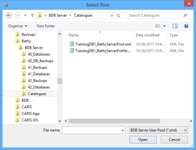 4. Select the Pool file for the catalogue you want to upload and click Open.