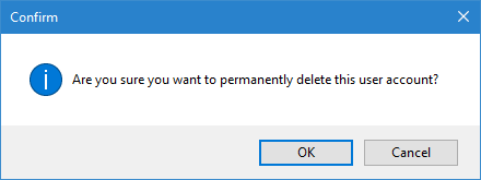 If a user account is no longer needed, the account should be deleted from the system. Completely deleting a user means removing it from both the node manager and the RDBMS.