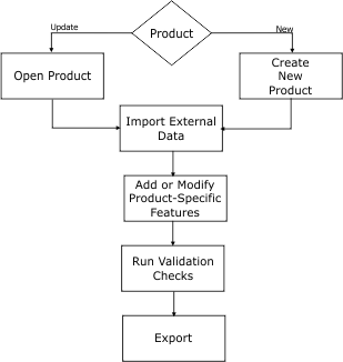 Import External Data | Import data into an existing product using any of the import commands (Import Selected Objects, Import as Update, Object Import Utility) or update a product that was created from multiple datasets using Regenerate Product. |