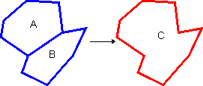 In this example, area A has a hole which is filled by area B. The two areas therefore share a boundary and new area C is created.