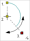 5. Drag the cursor to an appropriate length and direction for the arc (3).
