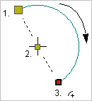 4. Press and hold the left mouse button and drag the cursor to the desired length and direction of the arc (3).