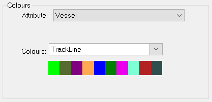 Attributes that are based on a set of unnamed values (such as Project and Vessel) are also coloured using a colour map. However, in this case there are no Minimum or Maximum options because each value is simply assigned the next colour defined in the colour map sequentially.