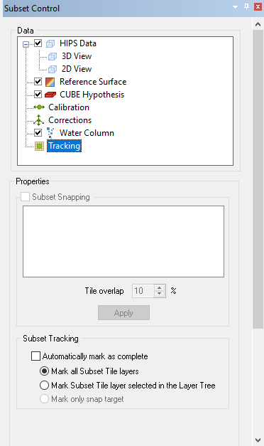 CARIS HIPS and SIPS : HIPS and SIPS : HIPS and SIPS Editors : Subset Editor : Subset Control Window : Tracking Node