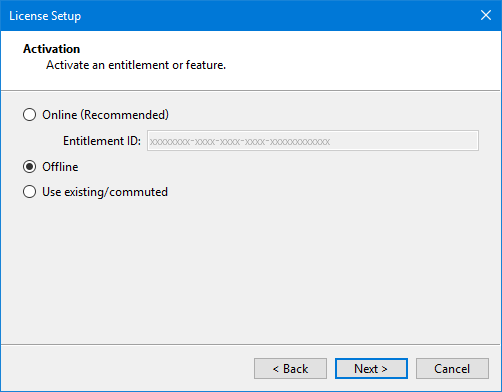 If the license procedure is successful, the License Setup dialog box displays a list of activated licenses with check marks beside them.