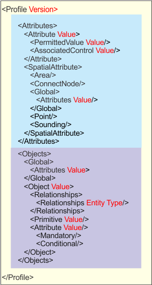 A profile defines relationships between features and attributes in a catalogue dictionary.