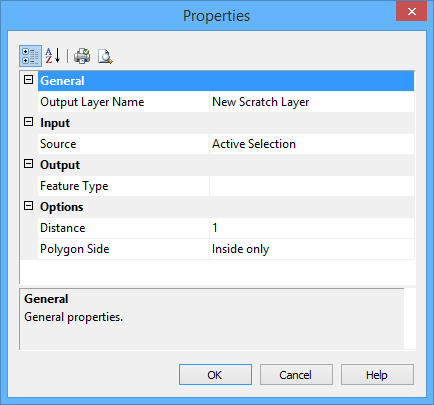Create a new feature using the geometry of an existing area plus a user-defined buffer. This command can be applied to selected areas or to all areas on a selected layer.