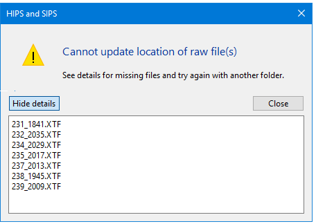Check HIPS File / Reset Raw Data Location