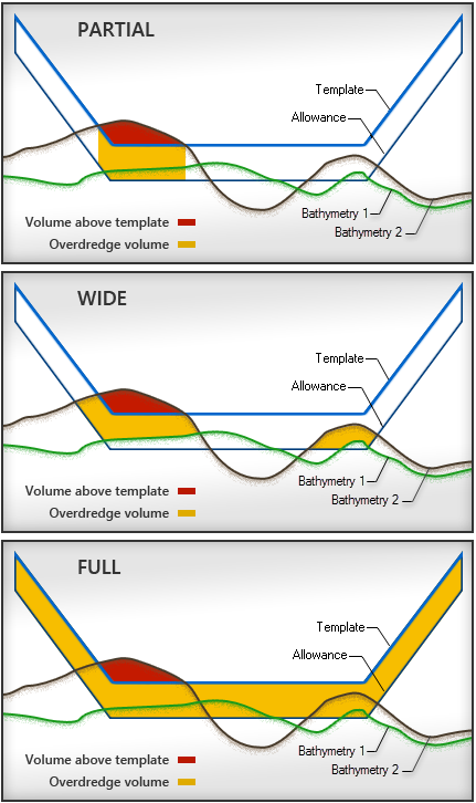 Partial Bottom: Calculates allowance volume only for the area of the model which has excess volume at the model depth.