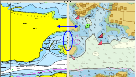 One side of the divider displays the active layer, the other displays all other open layers. You can drag back and forth to see differences between the layers.