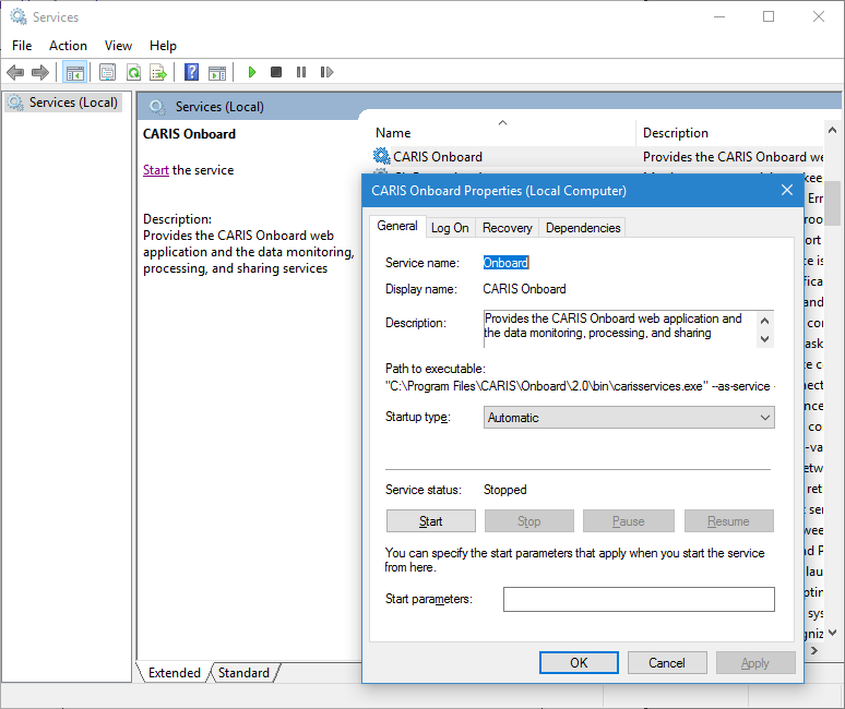Next, determine the account under which the Onboard service is running, and change it if necessary.