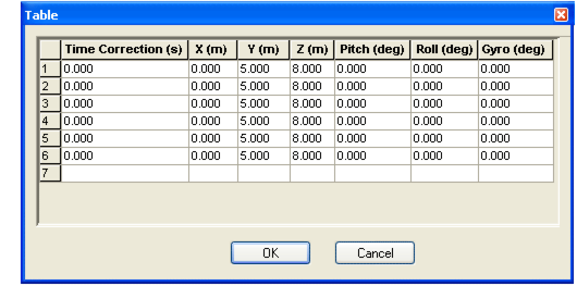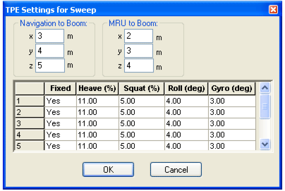 The TPU Settings dialog box is displayed. Enter TPU values for each beam on the boom and edit values entered during creation of the new vessel file in the wizard.