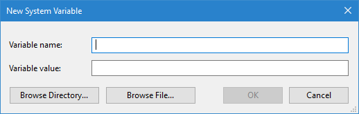 Next you need to create a new environment variable. This is done in the Windows Control Panel.