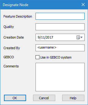 If the attributes option is enabled, the Designate Node dialog box is displayed and you must continue with the next step. If the attributes option is not enabled, the sounding is flagged as designated.