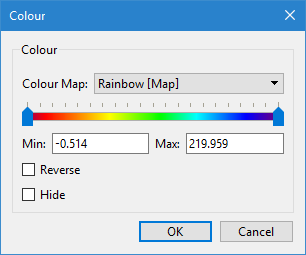 Colour Map: The colour map or range file to apply to the view of the data in the Profile window. An existing Colour Map can be used or a custom colour map/range file can be created using the Colour Map Editor or Colour Range Editor. See Colour Map Editor and Colour Range Editor for information on these editors.