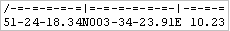 In the example above, the first attribute column would have a start value of 0 with a width value of 11 because there are 11 characters in the X (Longitude) value. The second column (Y or Latitude) would start with the next consecutive number, making the start value 12. It has a width value of 11, taking up characters 12 to 23 in the array of numbers. The start value of the third column (elevation) would then be 24 and the width value would be 5.