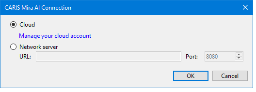 The default Noise Classifier is offered as an Internet-based service, and requires users to register with this service prior to executing this process. This can be done using the CARIS Mira AI Connection dialog box or in the CARIS Mira AI Authentication dialog box.