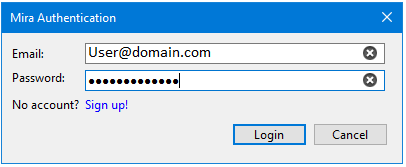 2. If you do not have valid credentials to access this process, click Sign up! to create a new login on the CARIS Mira AI platform.