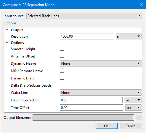 Input Source | The input source for the separation model. The options available include: • Selected Track Lines: This setting will create the model using only track lines that are currently selected. This setting is selected by default if lines were selected before opening the dialog box. • <HIPS track lines layer>: This setting will create the model using all track lines in the selected layer. All layers containing track lines shown in the Layers window are included in the list as available sources, including filter layers. • All Track Lines: This setting will create the model using all track lines from all datasets currently open in the application. This setting is selected by default if no lines were selected when the dialog box was opened. |