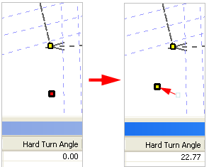 cannot be represented just by the chains and offsets of the compound alignment. In this case a hard turn angle is used to represent the point.