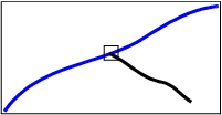 Intersecting splits the edge of both the existing feature and the new feature. In this example, the blue line is the existing line. It is split when the vertex of the black line is added.