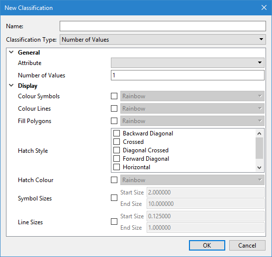 The Classification command uses the following dialog box.