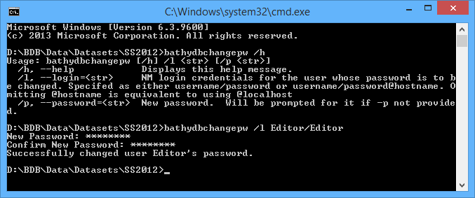 2. Type “bathydbchangepw” followed by the appropriate parameters.