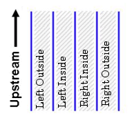 Up to twenty partitions can be created in each reach and each partition is named according to the number of partitions created. For example, if the division results in three partitions, they would be named: “Middle Half”, “Left Outside”, and “Right Outside”.