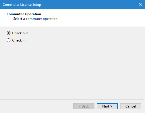 This wizard is used to check in and check out commuter licenses.