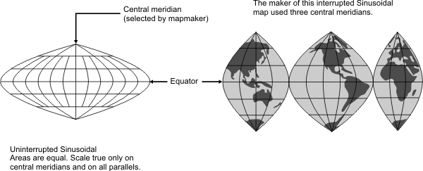 CARIS BASE Editor : CARIS Geomatics Reference Guide : Map Projections : Sinusoidal Equal Area