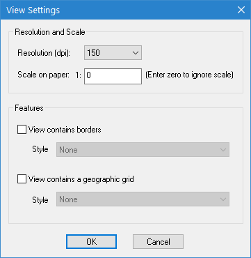 The default resolution for image objects is 150 dpi (dots per inch). 3. Select a Resolution from the drop-down list, if desired. 4. Type a Scale for displaying the image (or type 0 to ignore the scale). 5. [Optional] If borders and/or a geographic grid are turned on in Tools > Options and they are to be included in the image, click the respective check boxes and select a Style option for each. 6. Click OK to close the dialog box and return to the New Publication dialog box. 7. Use the Pan and Zoom tools to adjust the view as needed. 8. Click Capture to capture the current view using the specified settings. Only data visible in the Display window will be included in the image. The image object now has a check mark beside it. |