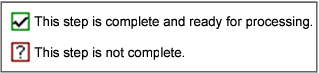 The Combine Coverages command launches a wizard that consists of 4 steps. Icons are displayed for each step to indicate whether the settings for that step will allow you to finish the process to create the new coverage.